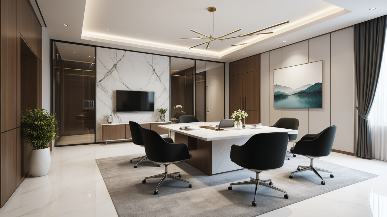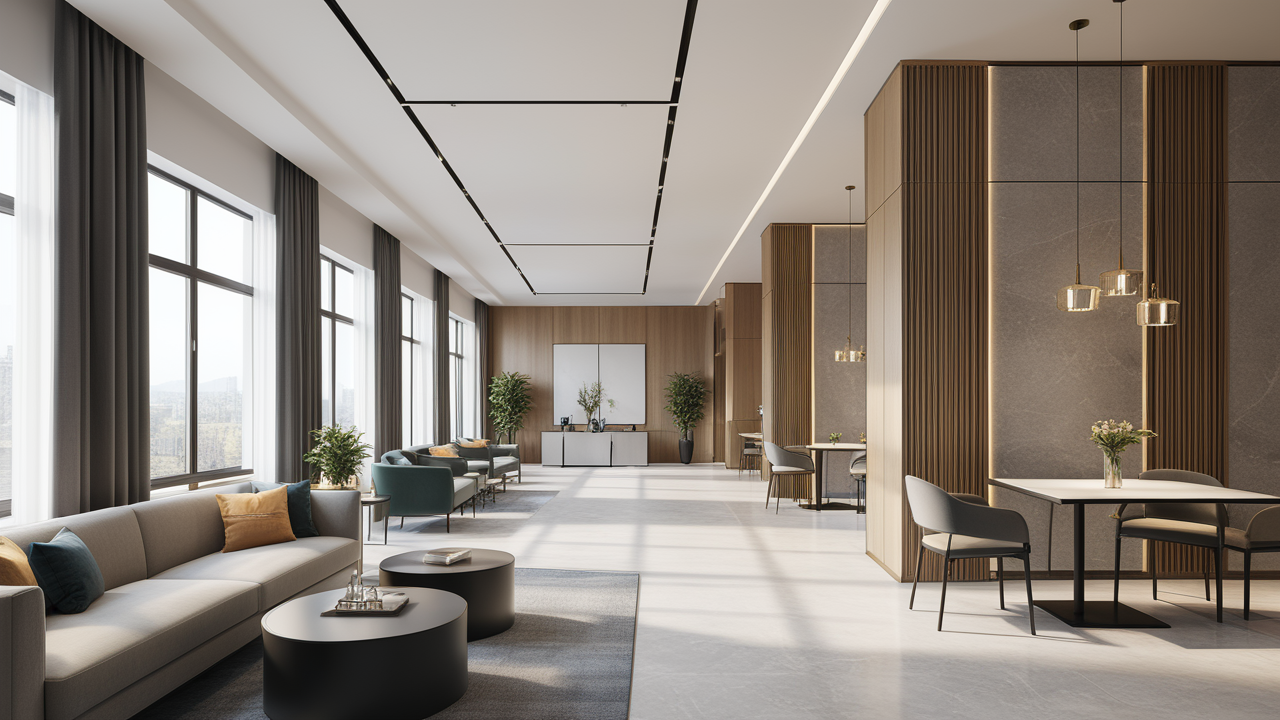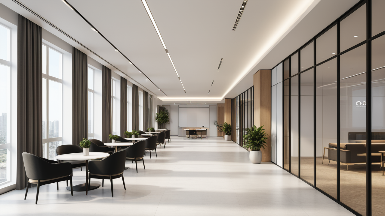 本案屬于簡約的風格,簡單而有品位,色調冷暖結合。辦公環(huán)境的風格取向、舒適與否對于提升員工的工作效率和體現(xiàn)企業(yè)文化起到至關重要的作用。辦公室整體色調采用藍灰調,使員工辦公的心情能夠沉靜下來,工作效率自然可以得到提高。有一位建筑大師曾說過:“當綠化、光和風根據(jù)人的意念從原先自然中抽象出來,它們就趨向天堂”。我們在室內引入天光設置了自然植物,將室外的感覺引入室內空間,使辦公環(huán)境更具活力。