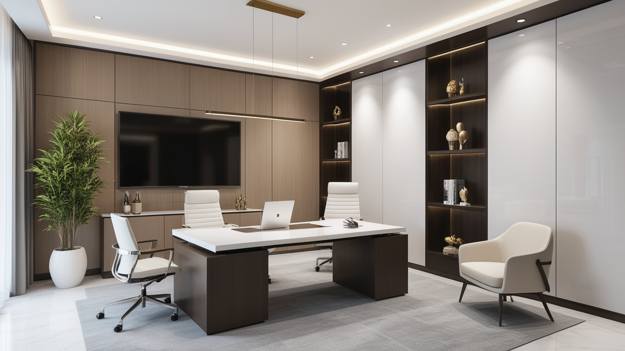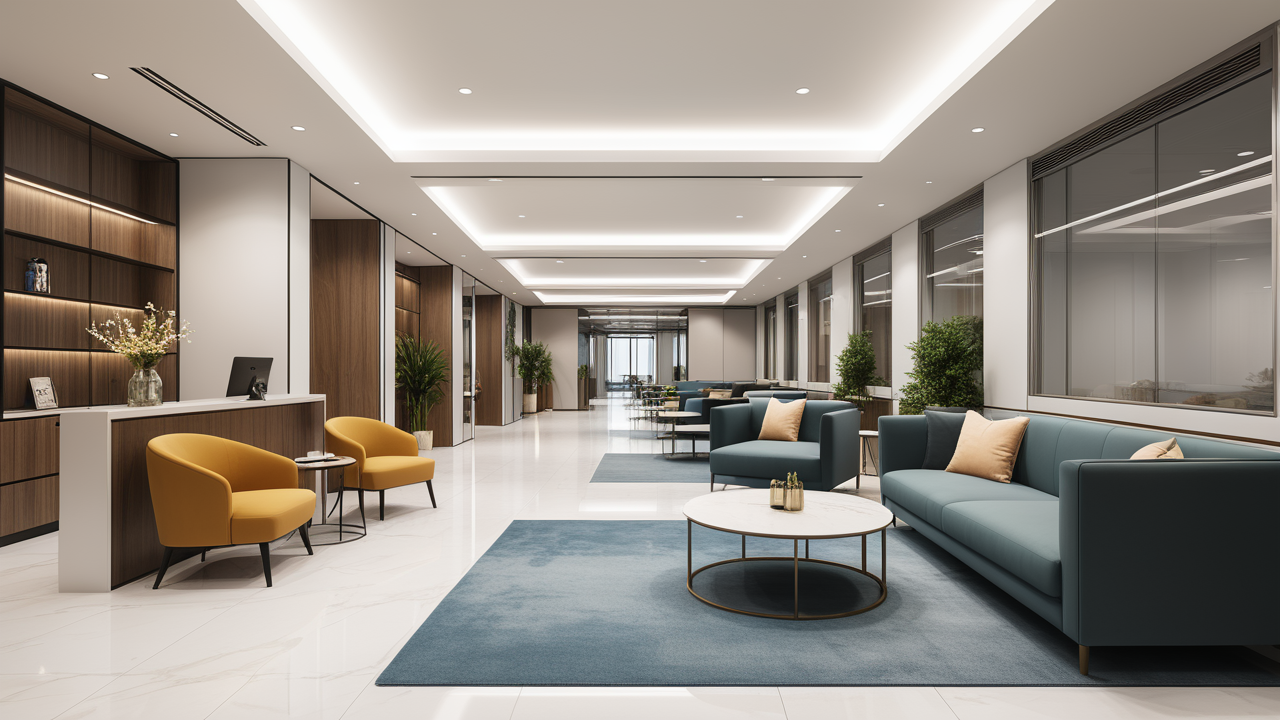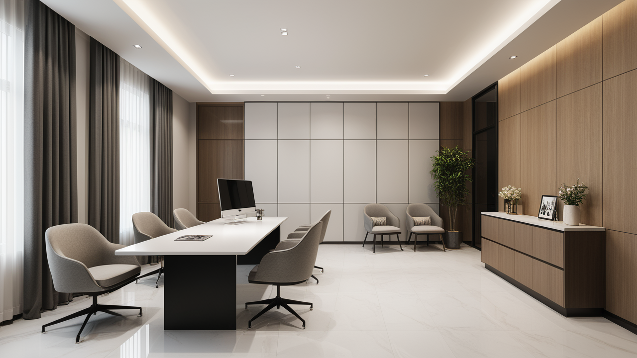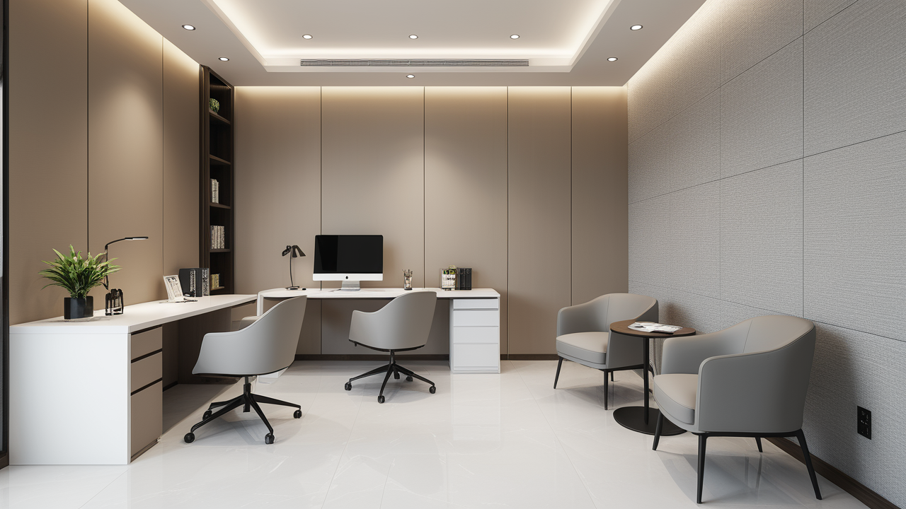 本案設(shè)計以簡潔的裝飾語言,對稱的空間布局,規(guī)范方整、功能健全,與環(huán)境形成交流,最終達成默契,突出了現(xiàn)代辦公環(huán)境講究效率的特征,整體風格簡約大方,符合公司的品牌形象和文化,同時也考慮到員工的舒適度和實際工作需求。這個辦公室裝修設(shè)計案例旨在為公司營造一個宜人的工作環(huán)境,提高員工的工作體驗和幸福感,從而推動公司的發(fā)展和成長。"