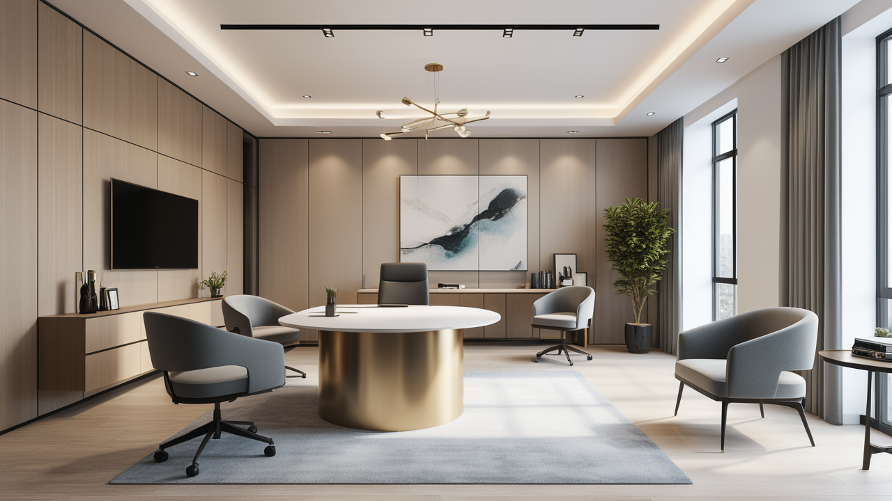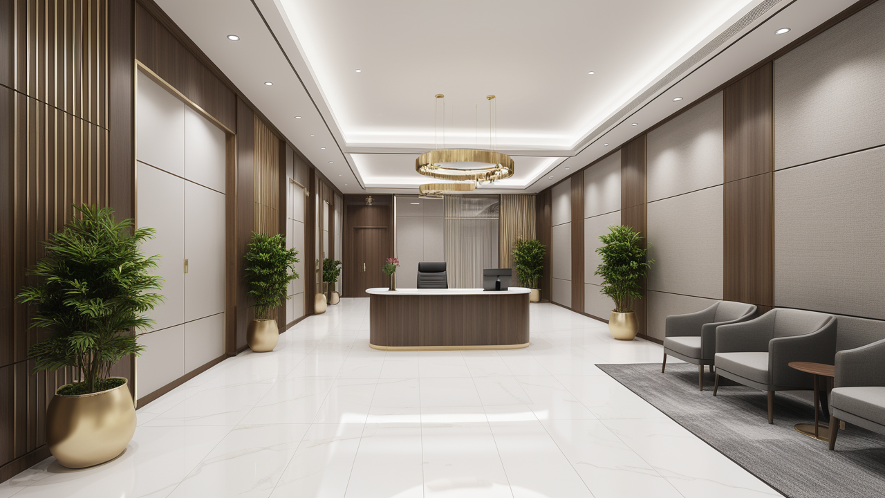 本案圍繞其“靈透”,大量使用了玻璃、銀色系列及淺色調(diào)的潔凈材料,如玻璃幕墻、銀質(zhì)鋁塑板、水晶白麻石材、?;u等,圍繞本案主題,構(gòu)筑個性化空間,該色彩搭配除了清透、雅致、穩(wěn)重、大氣之外,亦表現(xiàn)出一種力度感和效率感。滲透入貴機械制造企業(yè)之“清透感”,亦反襯企業(yè)之“柔美感”。以似乎矛盾的手法,又體現(xiàn)出古人之哲理“剛之極則柔,柔之極則剛”。老子說“上善若水”,該案則就其“善”滲透到每一個空間,極盡讓每個功能區(qū)都具有清透之靈性,盡顯靈動、清澈、時尚、大氣之空間氣韻。