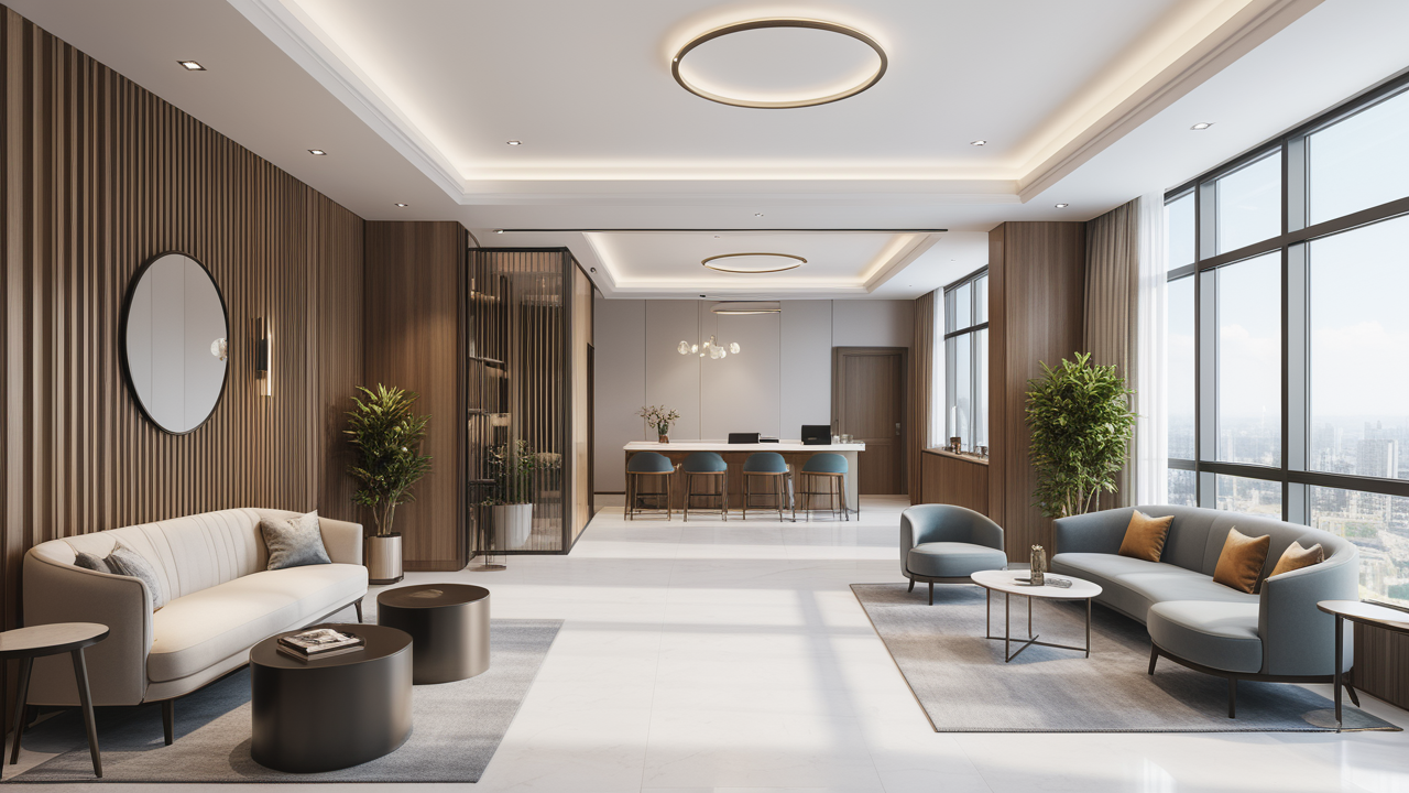 本案設(shè)計(jì)主題 “靈透之材,蓬勃之勢(shì)”為主題,本案就其“鋼之靈透”,用象征化的表現(xiàn)手法,多元化的設(shè)計(jì)元素,力求整體風(fēng)格與整棟大樓協(xié)調(diào)、清新、大氣的外觀設(shè)計(jì)保持一致,企業(yè)氣質(zhì)內(nèi)外渾然一體,展現(xiàn)出富有深刻內(nèi)涵的視覺(jué)空間及該企業(yè)獨(dú)特的個(gè)性與特點(diǎn),將復(fù)蘇這一時(shí)代特性滲透于整個(gè)空間,既突顯造企業(yè)特質(zhì),又蘊(yùn)涵公司新興而極具沖擊力的蓬勃發(fā)展之勢(shì)!